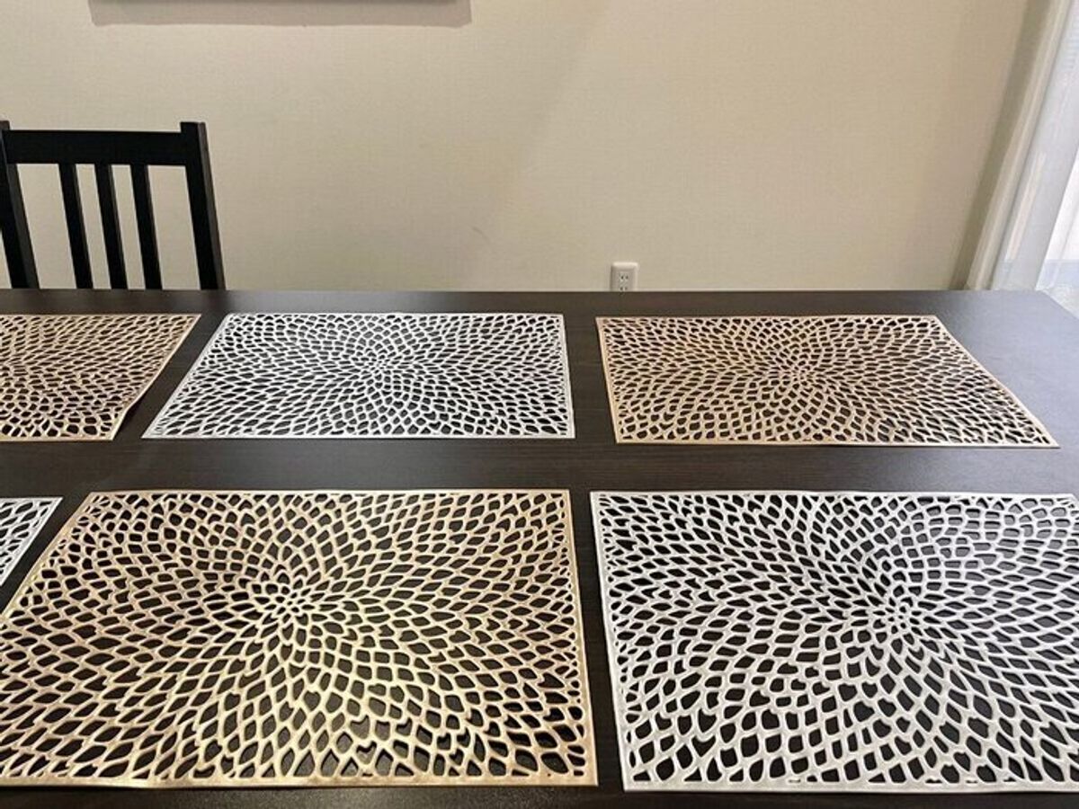ゴールドとシルバーの2色展開のランチョンマット、1枚110円です。
